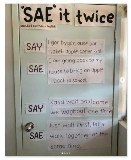 ‘We write a sentence in Creole (with local support) and translate it into Standard Australian English (SAE). This promotes a respect for both languages and develops the students’ fluency across both languages.’