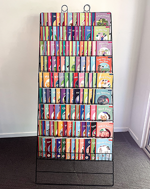 Brochure stands: An efficient way to see the cover of each Decodable Reader and its focus grapheme is to display the books in a brochure stand. It comes with the added benefit of the beautiful covers being on display – adding to student engagement appeal!